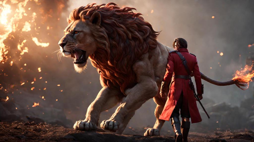 It represents the journey of the Biblical Faith. The Lion represent Jesus. The white palace at the start of the video symbolizes His Kingdom. When you give your life to Him, you become One with Him. You live with Him, You share His life, His Mind, His Kingdom, everything. The red jacket, present all along represents the Blood of Jesus Christ — when He sacrificed Himself at the Cross of Calvary 2000 years ago. His Blood saved us and washed us. Symbolically we need to “wear” The Blood of Christ, to be justified before God. The huge red army represents His Saints, the ones that decided to follow him, who have been redeemed by Him. All of them are sinners like you and I, broken people that were saved as they accepted the Gift of Life, Salvation and calling from Jesus.