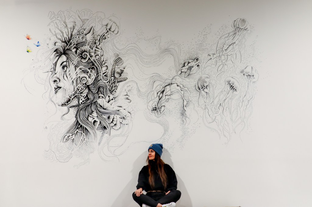 — Je suis une personne passionnée par l’art en général, j’aime expérimenter et toucher à plusieurs domaines artistiques, comme l’illustration que j’expérimente depuis mes cinq ans. J’aime amener la suggestion et la subtilité dans mon travail en général, dans la composition de plusieurs éléments en les rendant plus ou moins marquants. Je dessine ce qui m’anime, ce qui me parle et résonne. Je suis soucieuse de chaque détail et depuis plusieurs années, je suis dans une quête absolue d’harmonie et d’équilibre entre les pleins et les vides, tout en voulant aller à l’essentiel. Je trouve que c’est un challenge pour chacune des illustrations et une véritable force au-delà même de l’esthétisme, il y a une quête de sens, différents niveaux de lectures comme un livre, qui paraît figé parce que nous le percevons comme un objet mais qui pourtant, vit et se revit à chaque période d’une vie, en fonction de notre état émotionnel et notre évolution personnel. Le vrai défi est de faire en sorte de rendre cette illustration vivante, vibrante et inlassable. Je dessine essentiellement en noir et blanc, j’aime utiliser tout une palette de trames comme une palette de couleur, à la différence que c’est moi qui créer la texture et la matière avec un stylo micropointe. Depuis peu, je me remets gentiment à la couleur que j’expérimente et que j’essaye d’apprivoiser avec mon univers.